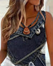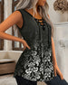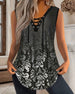 Tank Top Gekreuzte Schnürung Ärmellos Bedruckt