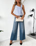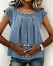 Top Rüsche V-Ausschnitt Ärmellos Denim