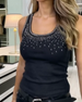 Tanktop Funkelnde Strasssteine Rundhals ärmellos