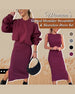 Lässiges, einfarbiges pullover-netzkleid-set mit hohem kragen