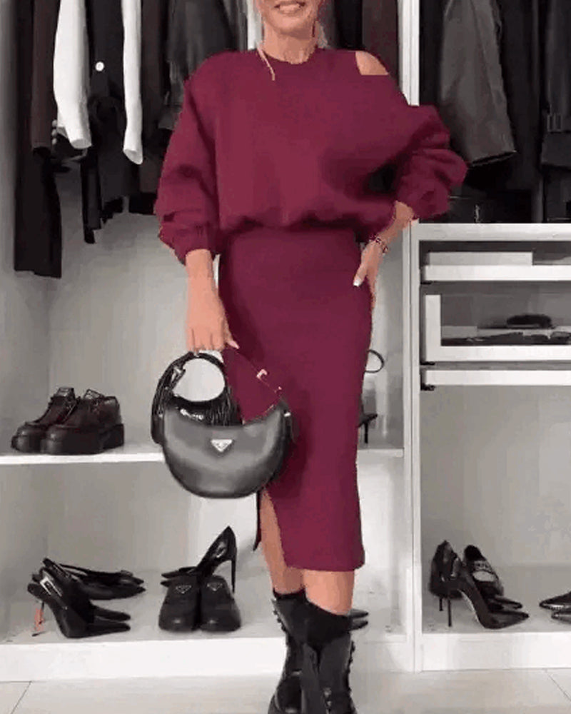 Icon1 Damen-Set mit schräger Schulter-Sweatshirt und ärmellosem Kleid