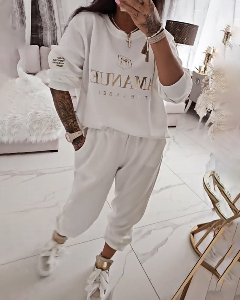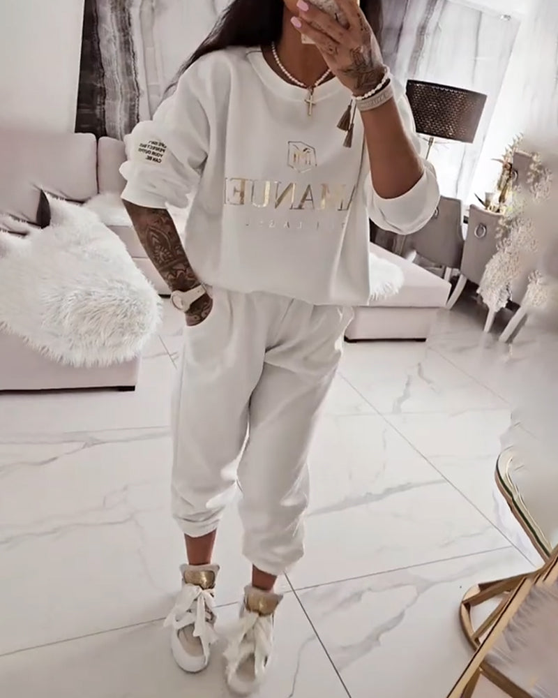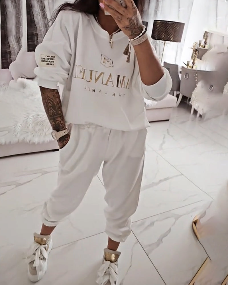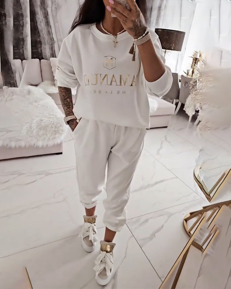 Set Sportlich Buchstaben-Druck Skinny Hosen
