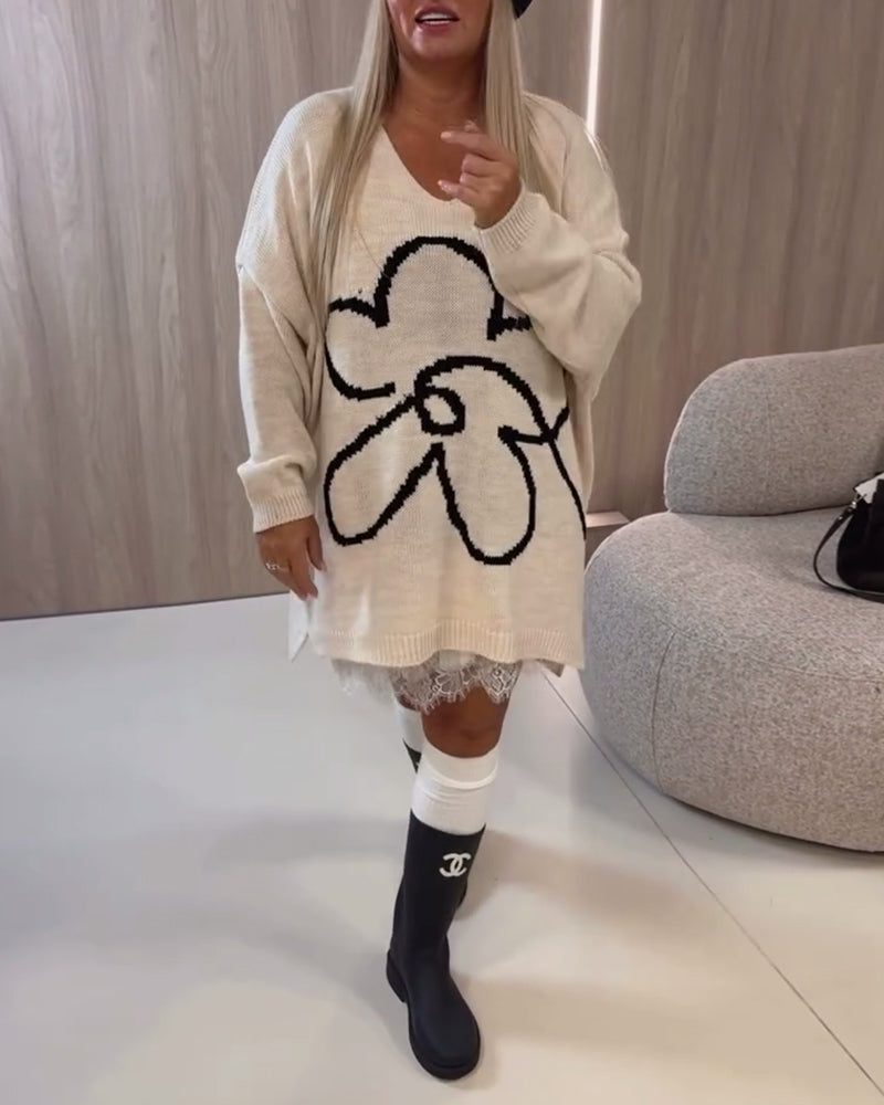 Zweiteiliges Set lässiger Rollkragenpullover Spitze