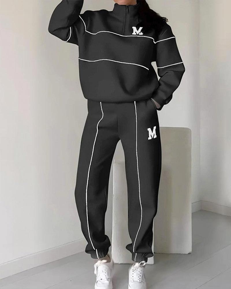 Icon1 Zweiteiliges Set Damen Casual Buchstabe M Langarm