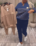 SPEZIFIKATIONEN Stil: Zwanglos Oberteil Typ: Blusen Kategorie: Sets Material: Baumwollmischungen Muster Typ: Farbblock Ausschnitt: V-Ausschnitt Ärmel Typ: Regulärer Ärmel Ärmellänge: Kurze Ärmel Hose Typ: Konventionell Länge der Hose: Lang Taille Typ: Mittlere Taille Passform Typ: Normal Jahreszeit: Frühling,Sommer Anlass: Täglich Paket enthäl...