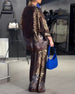 Zweiteiliges Set lässiger geometrischer Druck Weitbeinhose