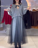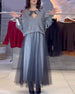 Pullover und Rock mit Fledermausärmeln und Schimmer
