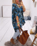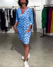Kleid Elegant Dreiviertelarm Gedruckte Taille