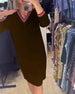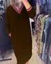SPEZIFIKATIONEN Stil: Zwanglos Material: Baumwollmischungen Kleid Typ: Gerades Kleid Kleid Länge: Knielang Ausschnitt: V-Ausschnitt Muster Typ: Einfarbig Ärmel Typ: Regulärer Ärmel Ärmellänge: 3/4 Ärmel Einzelheiten: Schlitz Passform Typ: Normal Jahreszeit: Herbst,Winter Anlass: Täglich Paket enthält: 1 x Kleid GRÖSSENTABELLE (cm) Größe Brsu...