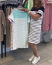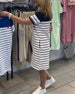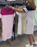 SPEZIFIKATIONEN Stil: Zwanglos Material: Baumwollmischungen Kleid Typ: Gerades Kleid Kleid Länge: Knielang Ausschnitt: Rundhalsausschnitt Muster Typ: Gestreift Ärmellänge: Kurze Ärmel Einzelheiten: Tasche Passform Typ: Normal Jahreszeit: Frühling,Sommer Anlass: Täglich Paket enthält: 1 x Kleid GRÖSSENTABELLE (cm) Größe Brsutmfang Länge S 9...
