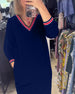SPEZIFIKATIONEN Stil: Zwanglos Material: 5% Elasthan, 95% Polyester Kleid Typ: Gerades Kleid Kleid Länge: Knielang Ausschnitt: V-Ausschnitt Muster Typ: Gestreift Ärmel Typ: Regulärer Ärmel Ärmellänge: 3/4 Ärmel Einzelheiten: Tasche Passform Typ: Normal Jahreszeit: Herbst,Winter Anlass: Täglich Paket enthält: 1 x Kleid GRÖSSENTABELLE (cm) ...