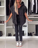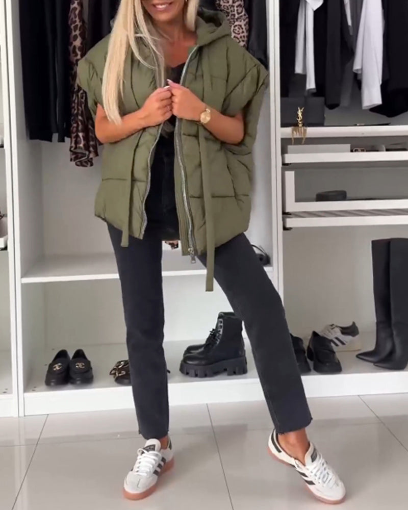 Ärmellose, lässige Steppjacke mit Kapuze und Reißverschluss