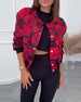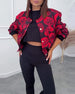 Lässige Jacke mit Knöpfen und Rosen-Print