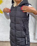 Ärmelloser, wattierter Mantel mit Reißverschluss und Kapuze