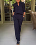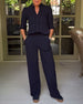 SPEZIFIKATIONEN Stil: Schick Oberteil Typ: Blusen Kategorie: Sets Material: 60 % Polyester, 40 % kühle Seidenbaumwolle Muster Typ: Einfarbig Ausschnitt: V-Ausschnitt Ärmel Typ: Regulärer Ärmel Ärmellänge: 3/4 Ärmel Hose Typ: Konventionell Länge der Hose: Lang Taille Typ: Mittlere Taille Passform Typ: Normal Jahreszeit: Frühling,Herbst Einzelh...
