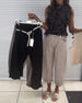 Modische hose in einfarbiger farbe mit unregelmäßigem patchwork und taschen