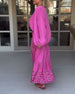 Lässiges kleid mit stehkragen und langen ärmeln und kordelzug