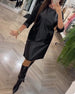 Kleid lässig Rundhals Schlitz Persönlichkeit Design