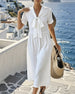 Kleid 100% Baumwolle Lochstickerei V-Ausschnitt Mode