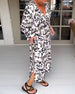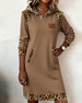 Kleid lässig langärmlig Leopardenmuster Patchwork