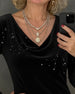 Top V-Ausschnitt mit Pailletten Samt Patchwork