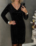 Kleid V-Ausschnitt Pailletten Schlitz Party