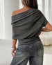 Bluse Fledermausärmel Off-Shoulder Einfarbig