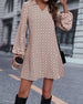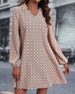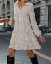 SPEZIFIKATIONEN Stil: Zwanglos Material: Polyester, Elasthan Kleid Typ: A-Linie Kleid Länge: Knielang Ausschnitt: Revers Muster Typ: Druck Ärmel Typ: Laternenärmel Ärmellänge: Lange Ärmel Passform Typ: Normal Jahreszeit: Frühling, Herbst Anlass: Täglich Paket enthält: 1 x Kleid GRÖSSENTABELLE (cm) Größe Büste Länge S 95 100 M 100 1...
