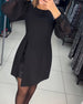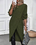 Einfarbiges Schlitzkleid mit 3/4-Ärmeln