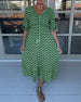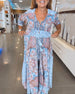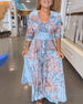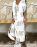 Bedrucktes langes Kleid mit V-Ausschnitt und Halbarm