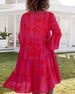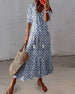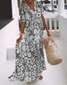 SPEZIFIKATIONEN Stil: Zwanglos, Urlaub Material: 5% Elasthan, 95% Polyester Kleid Typ: A-Linie Kleid Länge: Maxi Ausschnitt: V-Ausschnitt Muster Typ: Druck Ärmel Typ: Regulärer Ärmel Ärmellänge: 3/4 Ärmel Einzelheiten: Knöpfe, Kordelzug Passform Typ: Normal Jahreszeit: Frühling, Sommer Anlass: Täglich, Urlaub Paket enthält: 1 x Kleid GRÖSS...
