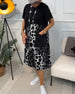 Achtung, meine Damen! Dieses lässige Rundhalskleid mit lockerem Print ist die perfekte Ergänzung für Ihre Garderobe! Es verfügt über ein klassisches Rundhalsdesign, das Ihren Hals betont, während die lockere Passform Ihnen ein bequemes und freies Gefühl ermöglicht. Der Rock hat genau die richtige Länge, um Ihre Beine zu bedecken und einen Hauch ...