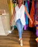 Bedrucktes Langarmshirt mit V-Ausschnitt