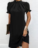 SPEZIFIKATIONEN Stil: Zwanglos, Elegant, Geschäftlich Material: Milchseide, Polyester Kleid Typ: Gerades Kleid Kleid Länge: Knielang Ausschnitt: V-Ausschnitt Muster Typ: Einfarbig Ärmel Typ: Rüschenärmel Ärmellänge: Halbe Ärmel Einzelheiten: Gerafft Passform Typ: Normal Jahreszeit: Frühling, Sommer, Herbst Anlass: Täglich, Arbeit Paket enthäl...
