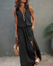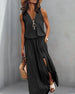 SPEZIFIKATIONEN Stil: Zwanglos, Urlaub Material: 95 % Polyester, 5 % Elasthan Kleid Typ: Tank Kleid Länge: Maxi Ausschnitt: V-Ausschnitt Muster Typ: Einfarbig Ärmellänge: Ärmellos Einzelheiten: Schlitz, Reißverschlüsse Passform Typ: Normal Jahreszeit: Frühling, Sommer, Herbst Anlass: Täglich, Urlaub Paket enthält: 1 x Kleid GRÖSSENTABELLE (...
