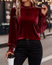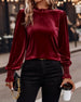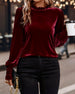 Langärmliges Top aus Samt mit V-Ausschnitt