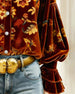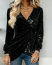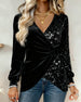 Top V-Ausschnitt mit Pailletten Samt Patchwork