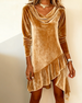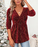 Samtkleid mit V-Ausschnitt und Twist-Knoten mit langen Ärmeln