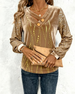 Top Mit Rüschen Kreuz Design V-Ausschnitt Sequins Patchwork