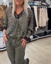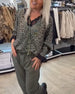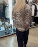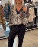 modische bluse mit leopardenmuster und V-ausschnitt sowie patchwork-spitze