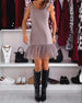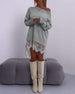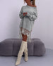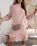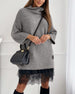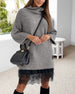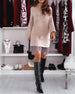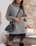 Lässiges, einfarbiges pullover-netzkleid-set mit hohem kragen