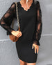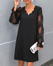 Einfarbiges Kleid mit V-Ausschnitt und Spitzenärmeln