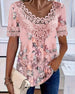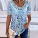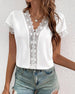 SPEZIFIKATIONEN Oberteil Typ: T-shirt Stil: Zwanglos Material: Baumwollmischungen Anlass: Täglich Ausschnitt: V-Ausschnitt Muster Typ: Einfarbig Ärmel Typ: Regulärer Ärmel Ärmellänge: Kurze Ärmel Passform Typ: Normal Jahreszeit: Frühling,Sommer Einzelheiten: Patchwork,Aushöhlung,Spitze Paket enthält: 1 x T-shirt GRÖSSENTABELLE (cm) Größe Brs...