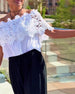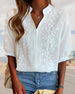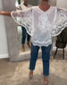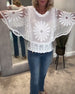 Bluse Schmetterlingsärmel Rundhals Bestickt