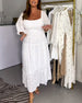 SPEZIFIKATIONEN Stil: Elegant Material: 5% Elasthan, 95% Polyester Kleid Typ: A-Linie Kleid Länge: Maxi Ausschnitt: Viereckiger Ausschnitt Muster Typ: Einfarbig Ärmel Typ: Regulärer Ärmel Ärmellänge: 3/4 Ärmel Einzelheiten: Aushöhlung Passform Typ: Normal Jahreszeit: Frühling, Sommer, Herbst Anlass: Täglich Paket enthält: 1 x Kleid GRÖSSENTA...