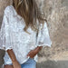 SPEZIFIKATIONEN Oberteil Typ: Blusen Stil: Zwanglos Material: Baumwollmischungen, Spitze Anlass: Täglich Ausschnitt: V-Ausschnitt Muster Typ: Einfarbig Ärmel Typ: Puffärmel Ärmellänge: 3/4 Ärmel Passform Typ: Normal Jahreszeit: Frühling, Sommer, Herbst Einzelheiten: Patchwork, Aushöhlung Paket enthält: 1 x Bluse GRÖSSENTABELLE (cm) ...