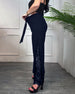 Einfarbiges, rückenfreies, sexy pyjamakleid