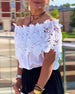 SPEZIFIKATIONEN Oberteil Typ: Blusen Stil: Zwanglos Material: Baumwollmischungen Anlass: Täglich Ausschnitt: Off Schulter Muster Typ: Einfarbig Ärmel Typ: Regulärer Ärmel Ärmellänge: Kurze Ärmel Passform Typ: Normal Jahreszeit: Frühling,Sommer Einzelheiten: Aushöhlung,Spitze Paket enthält: 1 x Bluse GRÖSSENTABELLE (cm) Größe Brsutmfang Länge...