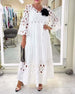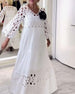 SPEZIFIKATIONEN Stil: Zwanglos Material: Baumwollmischungen Kleid Typ: A-Linie Kleid Länge: Maxi Ausschnitt: V-Ausschnitt Muster Typ: Einfarbig Ärmellänge: Neun-Punkte-Ärmel Einzelheiten: Patchwork Passform Typ: Normal Jahreszeit: Frühling,Sommer Anlass: Täglich Paket enthält: 1 x Kleid GRÖSSENTABELLE (cm) Größe Brsutmfang Länge S 97 132 ...