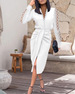 SPEZIFIKATIONEN Stil: Elegant, Party, Sexy, Geschäftlich Material: Baumwollmischungen, Spitze Kleid Typ: Wickelkleid Kleid Länge: Knielang Ausschnitt: V-Ausschnitt Muster Typ: Einfarbig Ärmel Typ: Regulärer Ärmel Ärmellänge: Lange Ärmel Einzelheiten: Patchwork, Schlitz, Gerafft, Spitze Passform Typ: Normal Jahreszeit: Frühling, Sommer, Herbst...